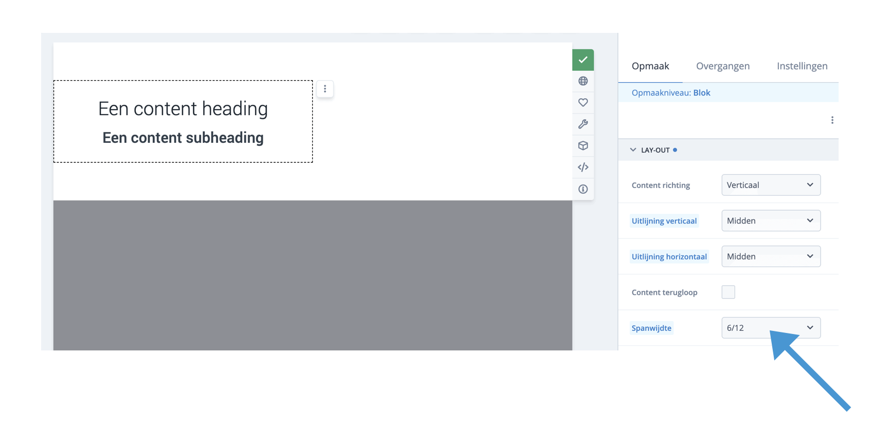 De breedte van de kolom kan aangepast worden door een andere spanwijdte te kiezen. In het voorbeeld hieronder is gekozen voor een spanwijdte van 3 (3 van 12).