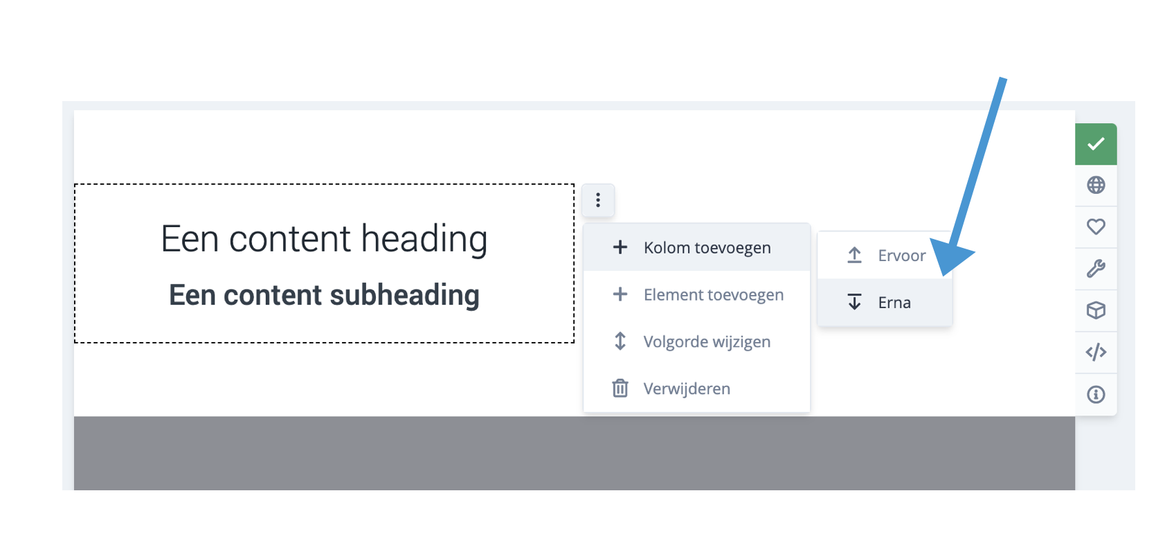 Hieronder wordt getoond hoe de nieuwe kolom eruit ziet na toevoegen. In de kolom kunnen extra elementen geplaatst worden. Het is verstandig om eerst een box in de kolom te plaatsen zodat je deze beter kunt stylen.