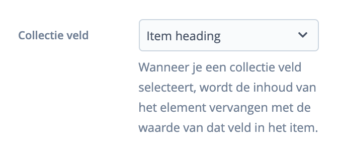 Bij een collectie kun je aangeven of je automatisch voor ieder item een detailpagina wil maken op basis van een template. Deze optie is standaard aangevinkt bij het aanmaken van een collectie en maakt het voor de niet technische gebruiker eenvoudiger om een collectie te vullen met content.