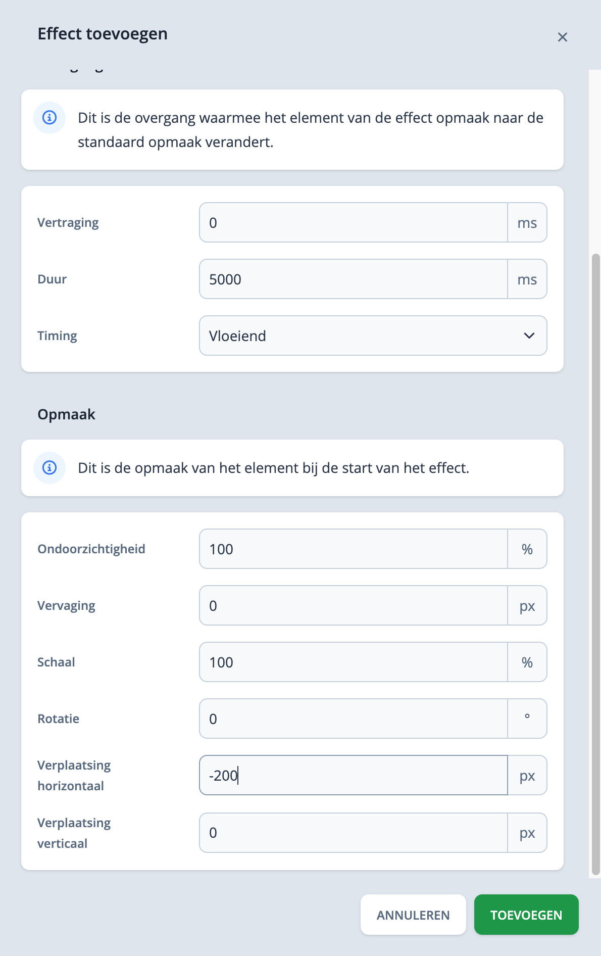 Stap 4: Inschuif effect instellen