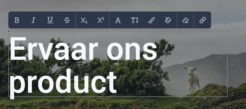 Het is ook mogelijk om een deel van de tekst te selecteren en deze vervolgens op te maken. Dit kan door gebruik te maken van de editorbalk welke boven de tekst wordt getoond wanneer je er op klikt als beheerder.