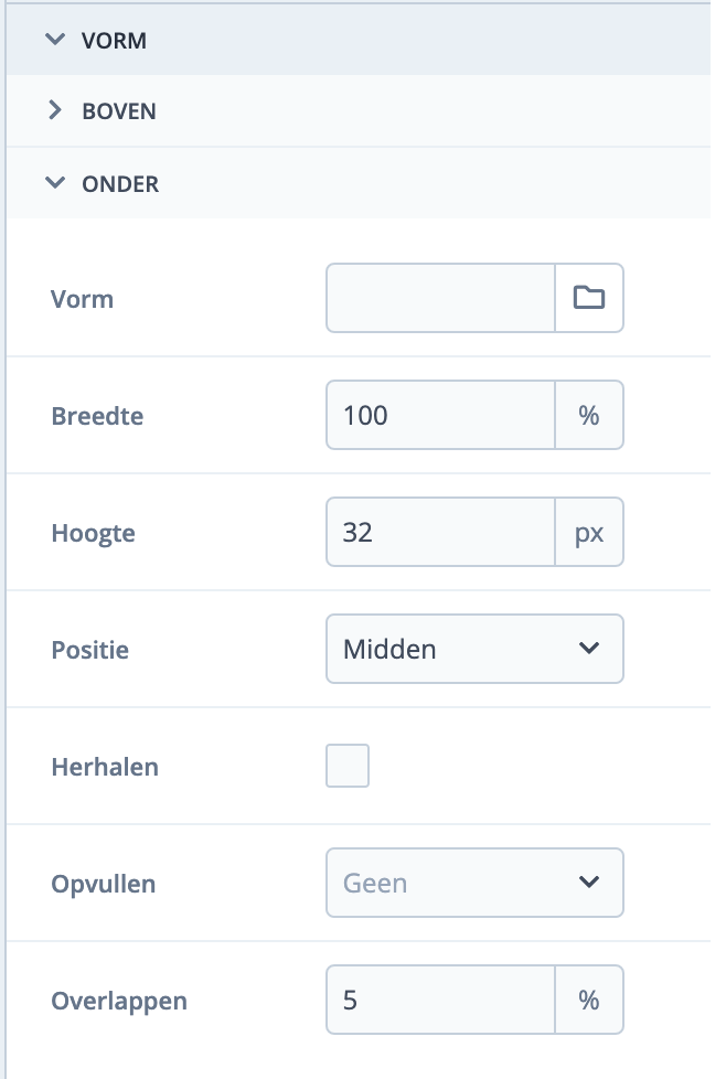 In het overzicht met vormen waaruit je kunt kiezen zullen de vormen getoond worden welke zijn aangemerkt voor de door jou geselecteerde zijde (boven, onder, links, rechts).