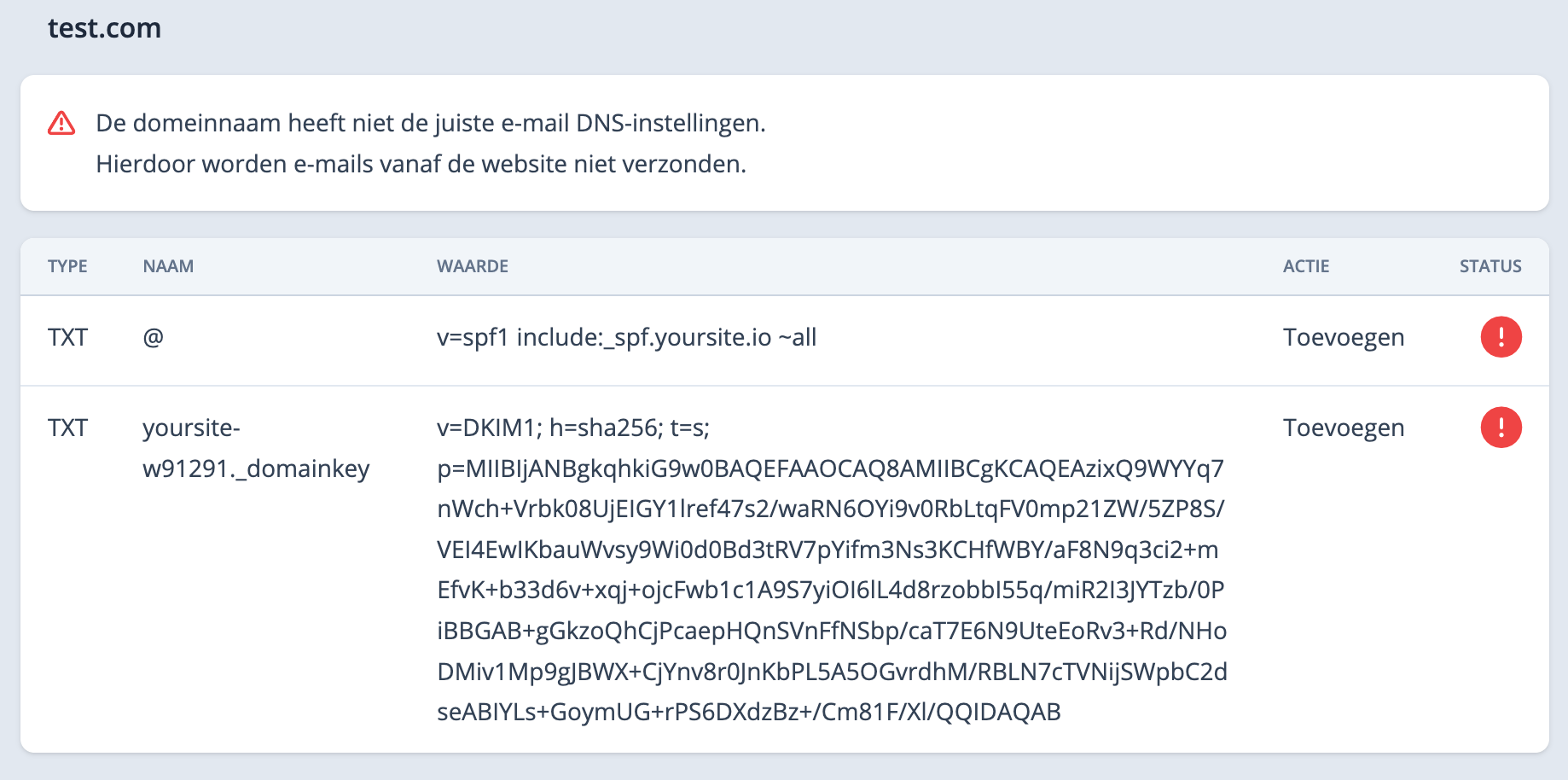Dan moet je DNS-records toevoegen voor het domein van je afzenderadres.
