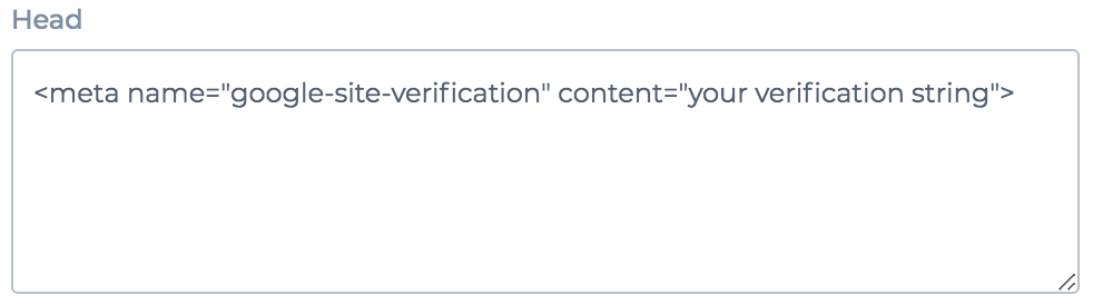 De verkregen meta tag plaats je vervolgens in Waanders. Studio bij je website instellingen in het vakje bij 'head'. Let op dat je de website vervolgens nog wel publiceert.